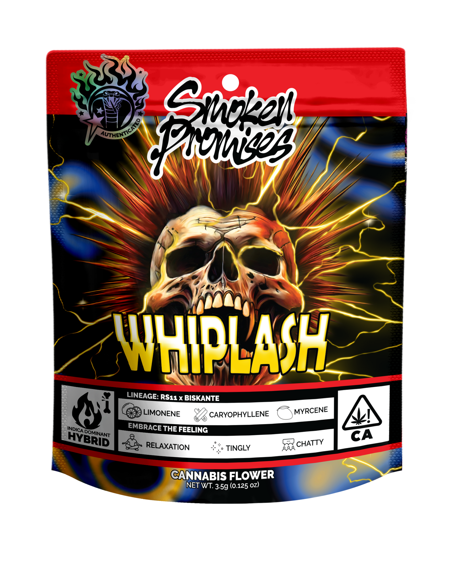 Prepare for a powerful surge of relief with Whiplash, an RS11 cross that delivers a jolt of energy followed by a wave of soothing calm. Experience a rush of invigorating tingles that race through your body, sparking chattiness and engagement. But don't worry about being thrown off balance, the initial rush is quickly cushioned by a deep, comforting relaxation. Whiplash is the perfect strain to smooth the tension of the day, leaving you in a state of head-to-toe euphoria as a deeply relaxed, electric hum washes over you.