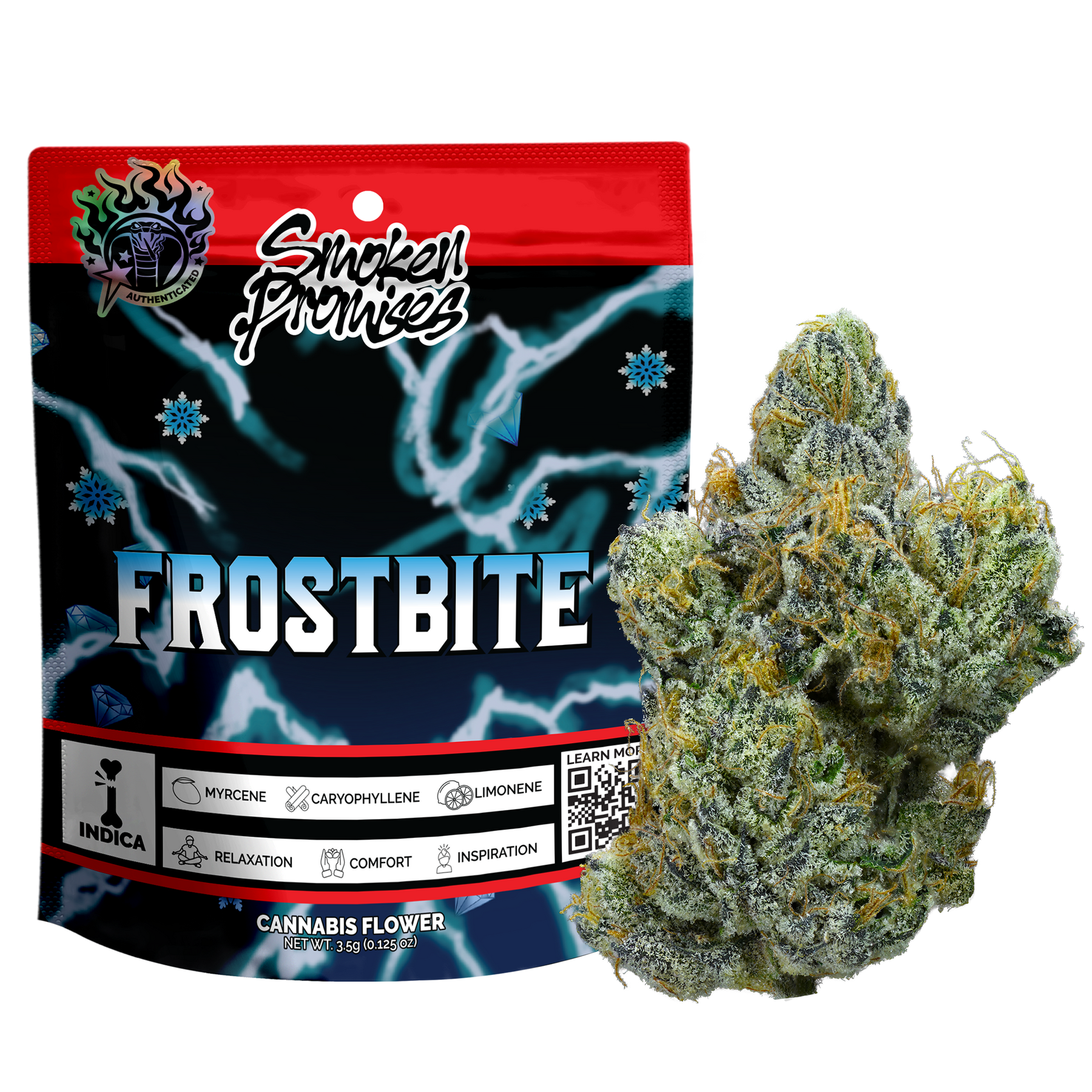 Indulge in Frostbite—a frosty delight with hints of vanilla cream, cake, and earthy goodness. Drenched in bling with diamond-like crystals and vibrant orange hairs, this stunning strain captivates the eye as much as it delights the palate. Enjoy a potent chill that bites back with relaxation, comfort, and bursts of inspiration. Perfect for cozying up with friends or igniting your creative flow, Frostbite wraps you in a warm embrace, delivering smooth, soothing, and sedating effects that melt away stress. Whether you’re winding down after a long day or seeking a blissful escape, Frost Bite is your ultimate ticket to sweet serenity!