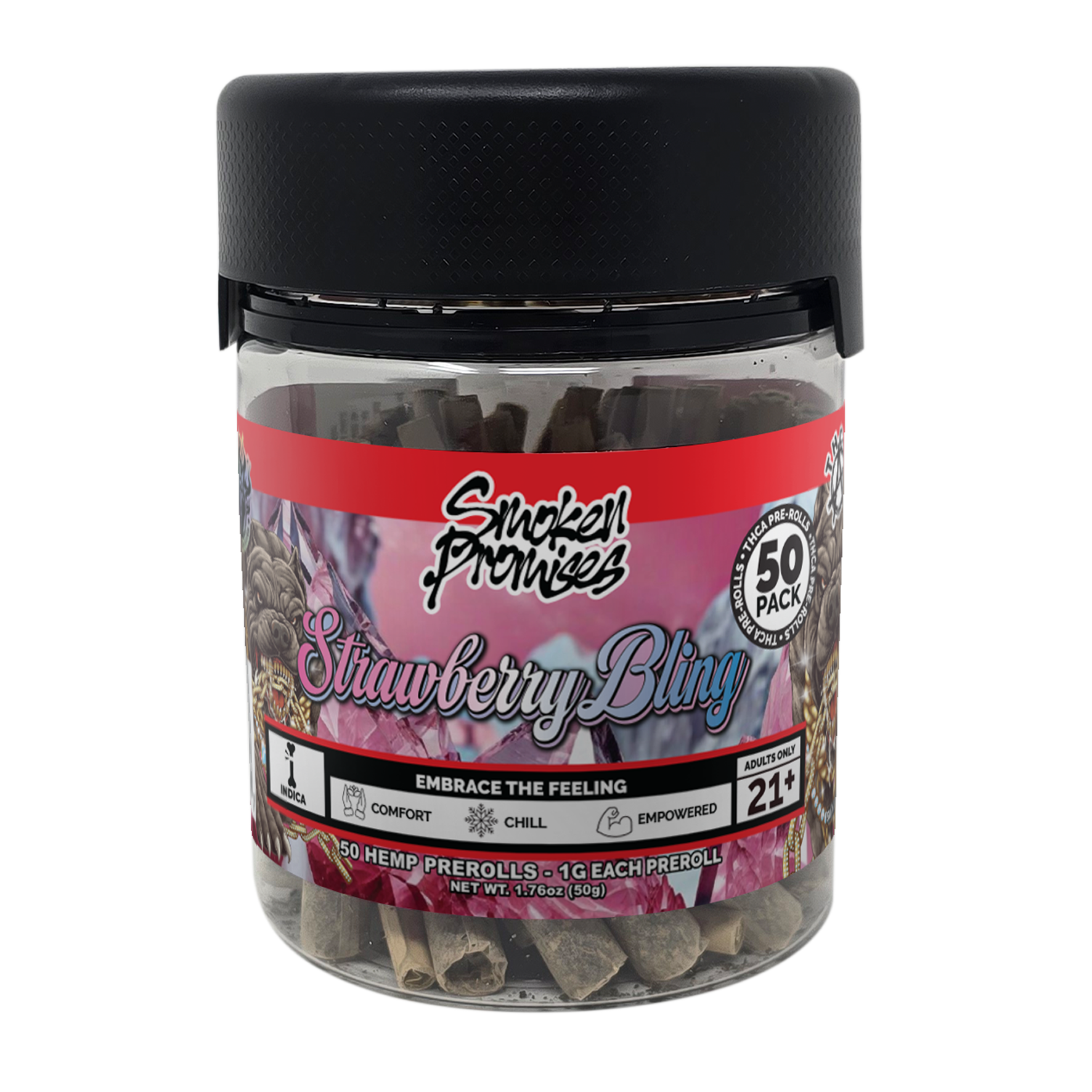 It’s a cold world, but we still bring the heat. Strawberry Bling isn't just an Indica; it’s a descent into a crystalline calm that hits like a winter storm. Each hit is a frosty spark of berry and gas that quickly freezes the chaos into a solid, untouchable peace. When the pressure reaches its breaking point, let the heavy, frosted weight of these pre-rolls adorn you in diamonds. With 50 pre-rolls ready to go, you’ll have an abundant supply for the long haul. No rolling or waiting, just grab one and hit the slopes.