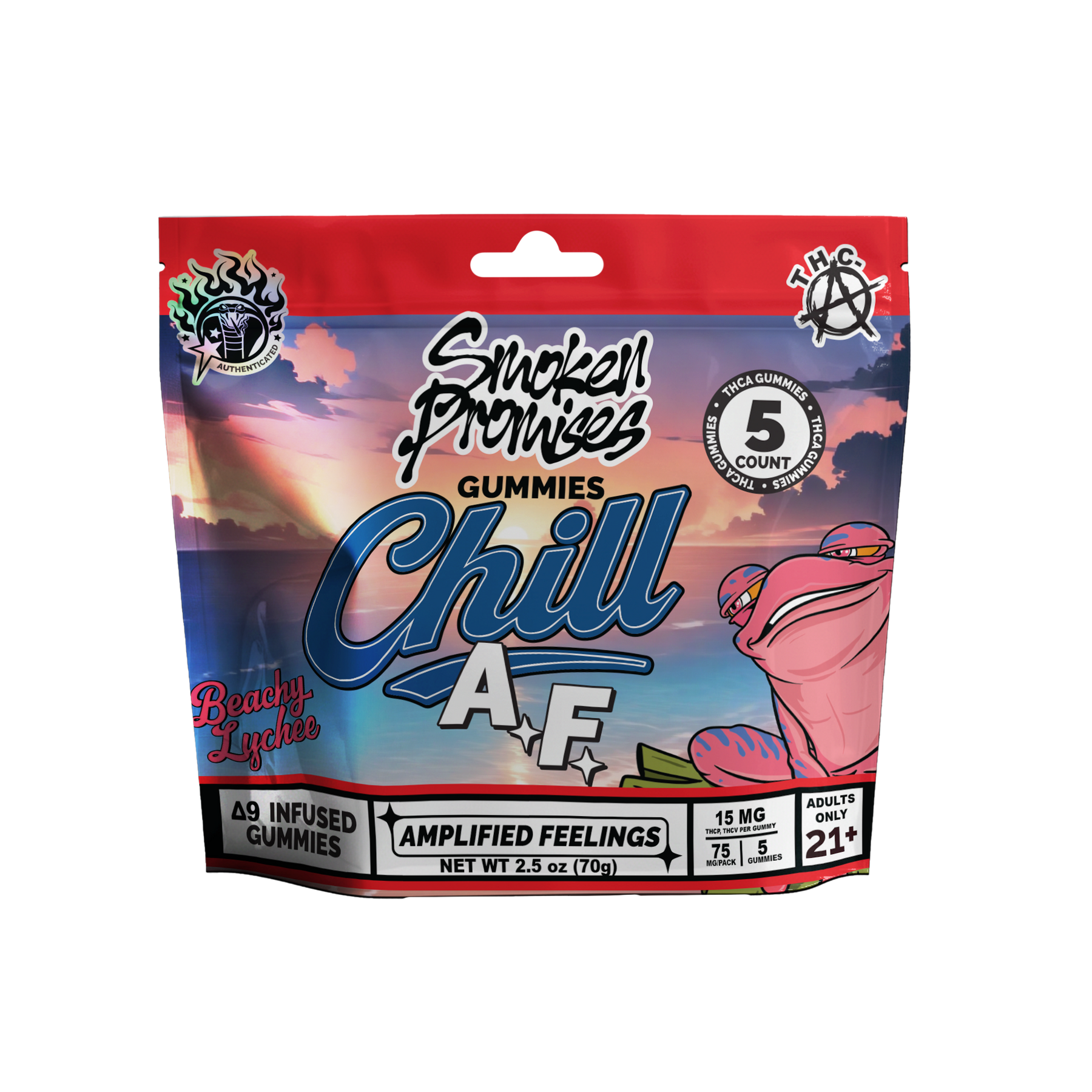 It’s time to dial it back and find your center. Chill AF is for those who want to amplify their inner peace and drift into a state of total, unbothered relaxation. These gummies don't just take the edge off, they pull you into a sunset state of mind where time slows down and the pressure disappears. Enjoy a tropical escape from the grind with delicious Beachy Lychee flavor, and put your stress and anxiety to rest. These gummies will ensure you aren't just relaxed, you are Chill AF.