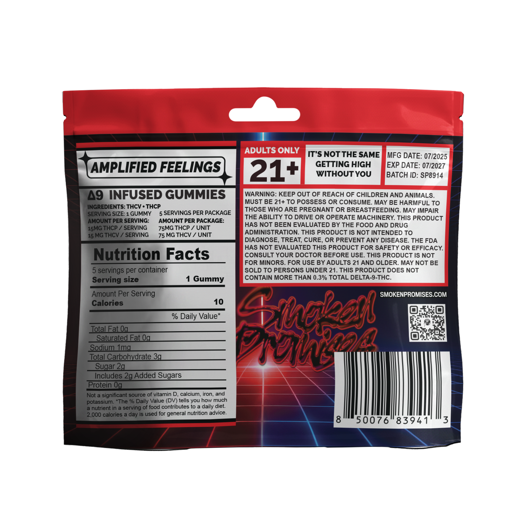 AF stands for Amplified Feelings. These gummies are designed to take your current mood and turn up the intensity. It’s your feelings, but amplified. Embrace the Feeling.