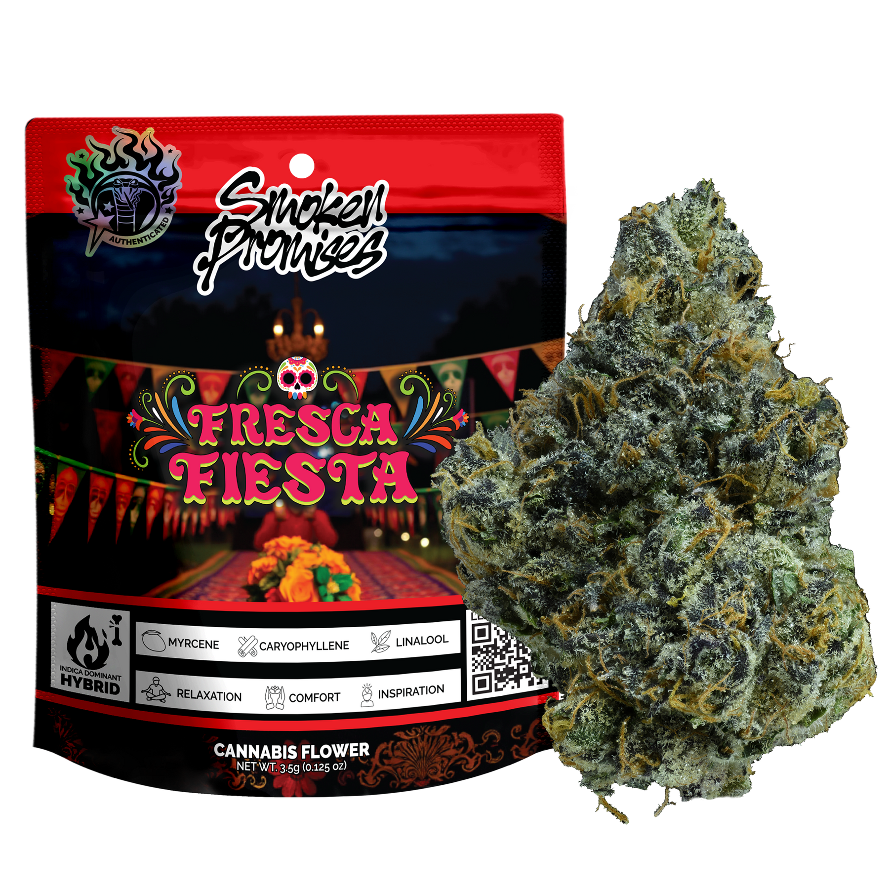 A new reason to celebrate -Fresca Fiesta, a strain that’s bursting open like a piñata, with a flavor profile that showers you with vibrant fruit and mouthwatering juicy goodness! Fresca Fiesta combines candy, gas and a hint of cream, a reminiscent nod to the fresh Mexican juices you’d find from street vendors all throughout Los Angeles. Get ready for a smash hit of flavor that transports you south of the border, embracing feelings of relaxation & comfort. So grab your amigos, kick back, and let Fresca Fiesta bring the party to you—it's simplemente delicioso!
