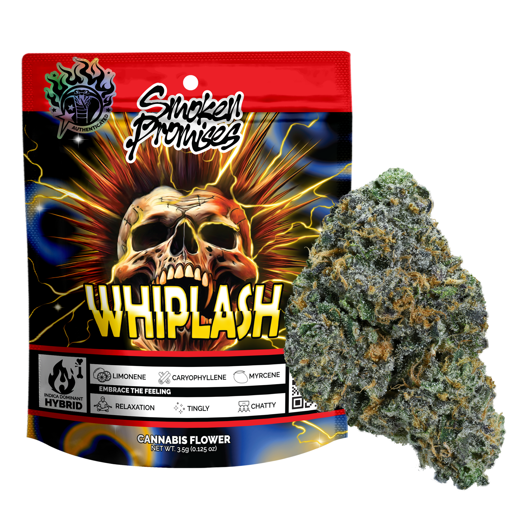 Prepare for a powerful surge of relief with Whiplash, an RS11 cross that delivers a jolt of energy followed by a wave of soothing calm. Experience a rush of invigorating tingles that race through your body, sparking chattiness and engagement. But don't worry about being thrown off balance, the initial rush is quickly cushioned by a deep, comforting relaxation. Whiplash is the perfect strain to smooth the tension of the day, leaving you in a state of head-to-toe euphoria as a deeply relaxed, electric hum washes over you.